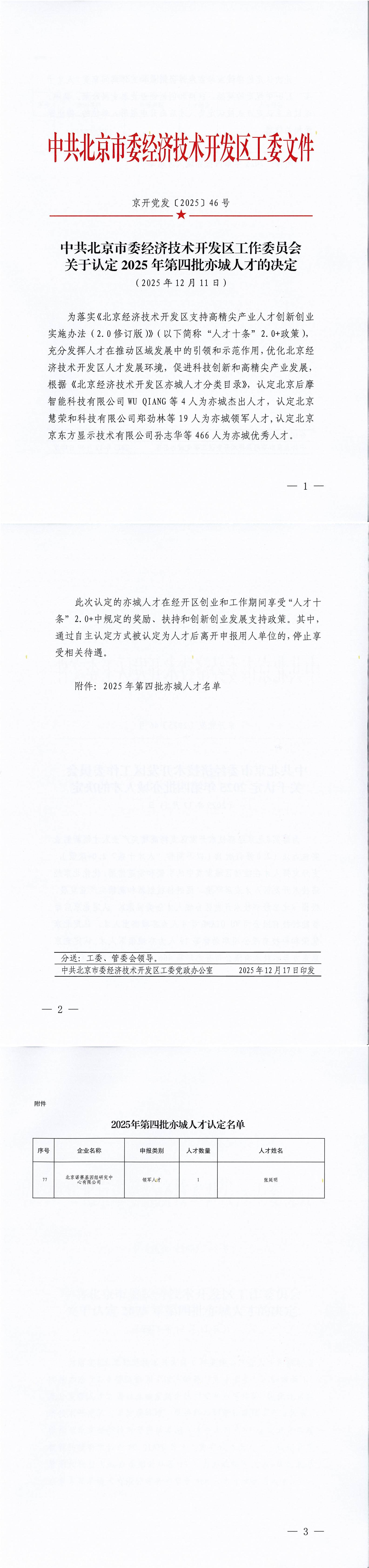近日,中共北京市委经济技术开发区工作委员会正式发布关于认定2025年第四批亦城人才的决定,北京诺赛基因组研究中心有限公司(“诺赛基因”)张延明博士荣获“亦城领军人才”称号。这一荣誉不仅是对张延明博士个人专业技能和贡献的充分肯定,更是诺赛基因持续深化人才队伍建设、构建全链条人才发展生态的重要成果。